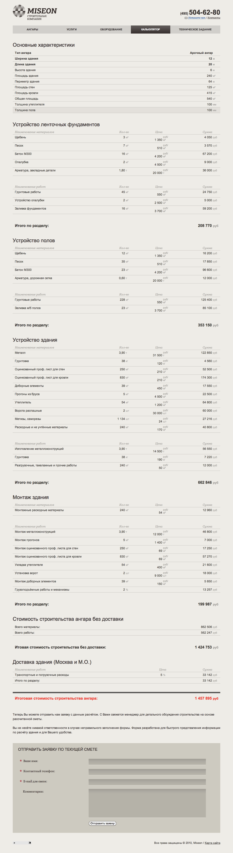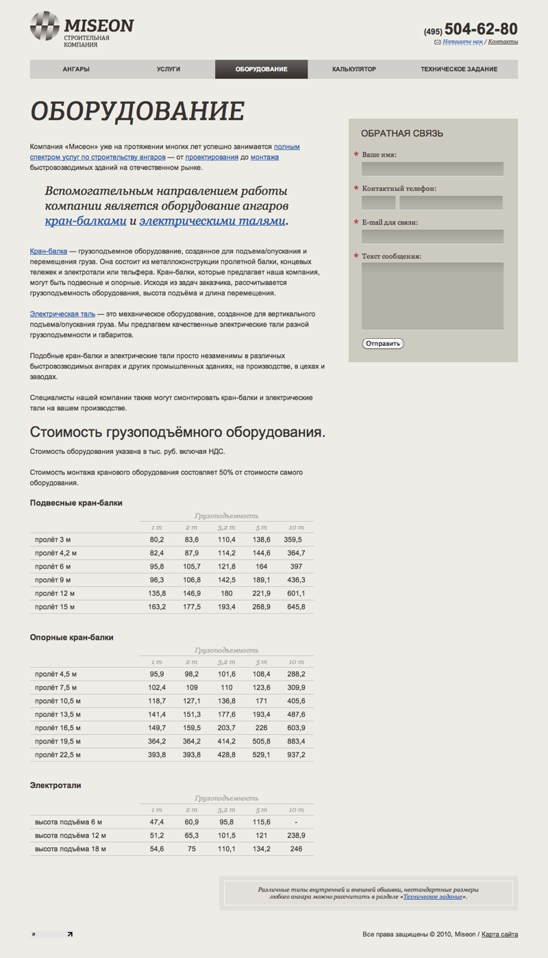 Сайт строительной компании «Мисеон»